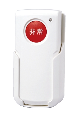 ペンダントタイプの緊急ボタン。軽く握るだけの簡単操作で、ワイヤレスなので家中どこでも持ち運びができます。